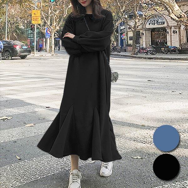 ワンピース ロング丈 スウェットワンピ 裾フレア レディース w454