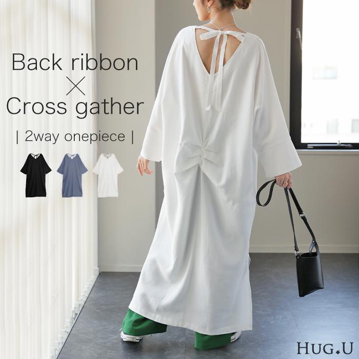 バックリボンレイヤードワンピースレディース 春夏 ワンピース