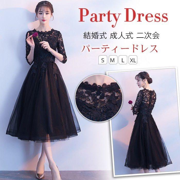 パーティードレス 安い 可愛い 総レース 7分袖 シック 上品 エレガント ドレス ワンピース 綺麗め ミモレ丈 披露宴 2次会 パーティー au pay マーケット