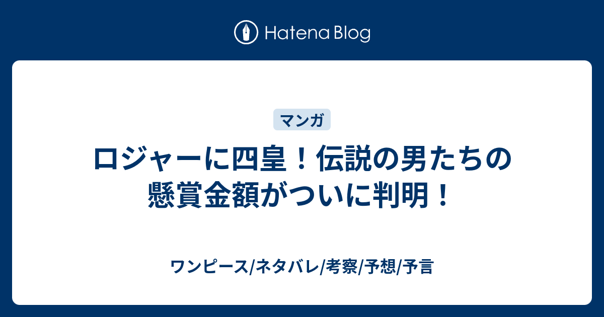 ロジャーに四皇 伝説の男たちの懸賞金額がついに判明 ワンピース ネタバレ 考察 予想 予言