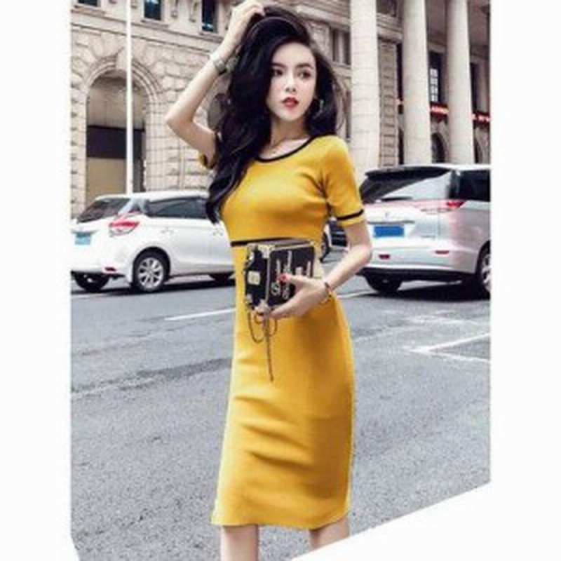 送料無料 ワンピース 半袖 無地 レディース 夏 シンプル セクシー スタイリッシュ フェミニン エレガント タイト サービス ボディライン