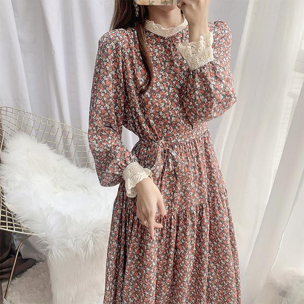 ロングワンピース ワンピ 韓国 コーデ きれいめ 冬 秋冬 秋 40代 30代 フォーマル 上品 おしゃれ きれいめ オフィス 大人 大きいサイズ aライン 演奏会 ドット柄 長袖 膝下丈 ワンピの里