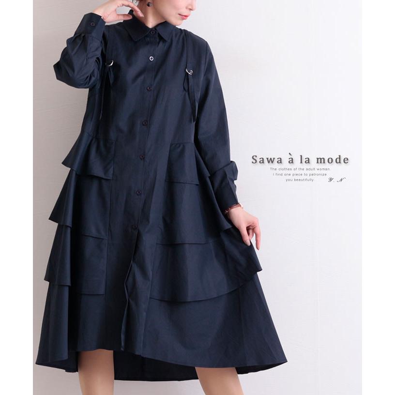 ワンピース レディース 長袖 バイカラー ブルー 青 春服 秋服 冬服 切替え フレア 秋コーデ エレガント サワアラモード 大人 可愛い 洋服 30代 40代 50代 60代 mode 6664 sawa a la mode サワアラモード 通販 yahoo ショッピング