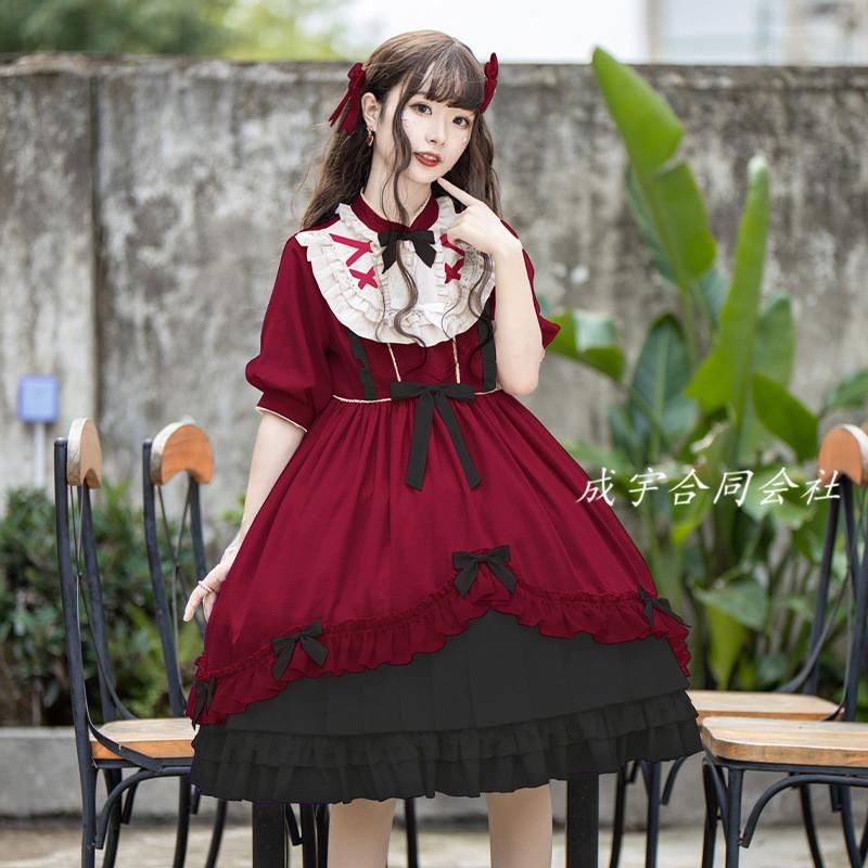 ワンピース ロリータ 長袖 制服 コスプレ ロリータ 探偵 大きいサイズ 女装 森ガール 学園 可愛い服 jk 制服 セット cosplay lolita 学生服 少女 アニメ コスチューム 甘ロリ ゆったり 仮装 お花見 茶色 s