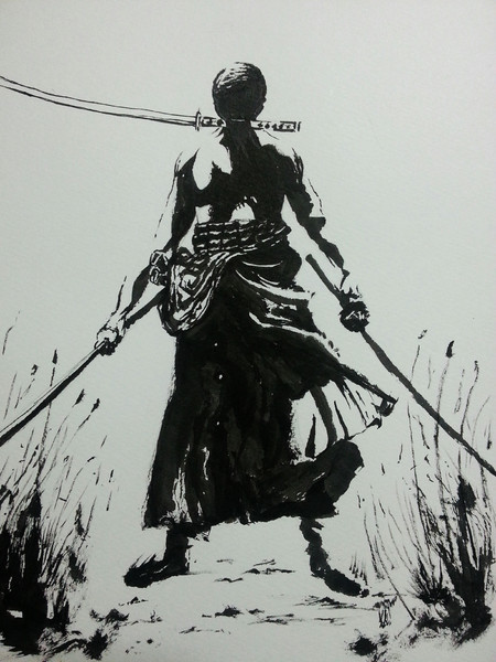 放浪のゲタロー no twitter 墨絵 居眠り狂四郎 ワンピース onepiece 墨絵