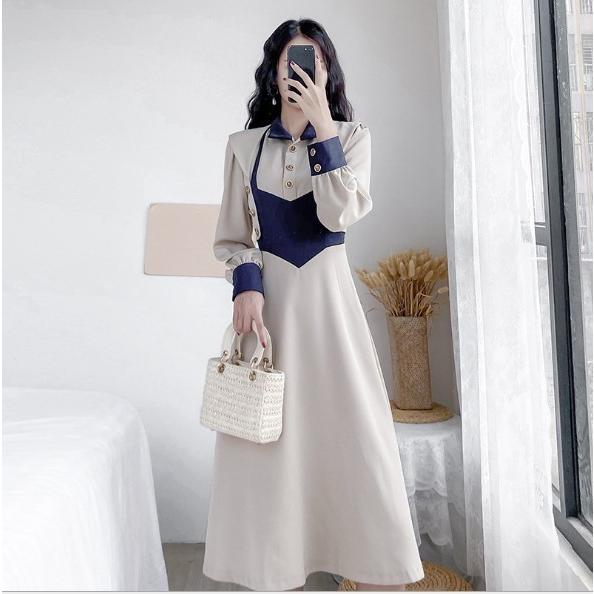 ロングワンピース 春 韓国 ファッション レディース ワンピース 春服 レディース aライン ベージュ ブラウン ワンピース シンプル 無地 長袖 ロングワンピ 大人可愛い 韓国 ワンピース 後ろリボン ランタンスリーブ 春ワンピ vestito