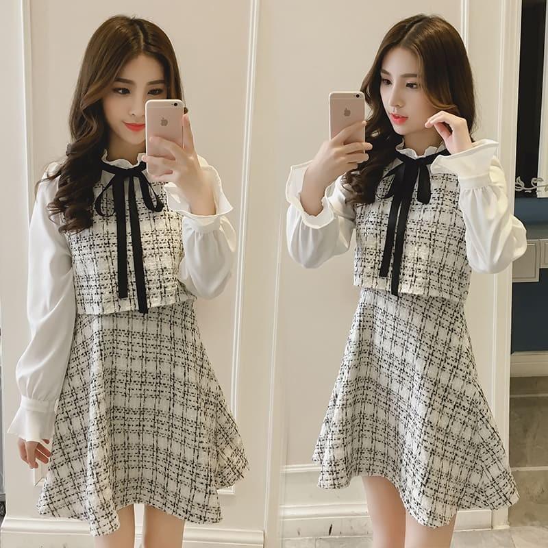 ワンピース ワンピ ミニワンピ レディース ミニ丈 春服 大きいサイズ 長袖 チェック柄 フリル 高校生中学生10代 学生 ガーリー おしゃれ 5010 5010 メイシンファッションヤフー店 通販 yahoo ショッピング
