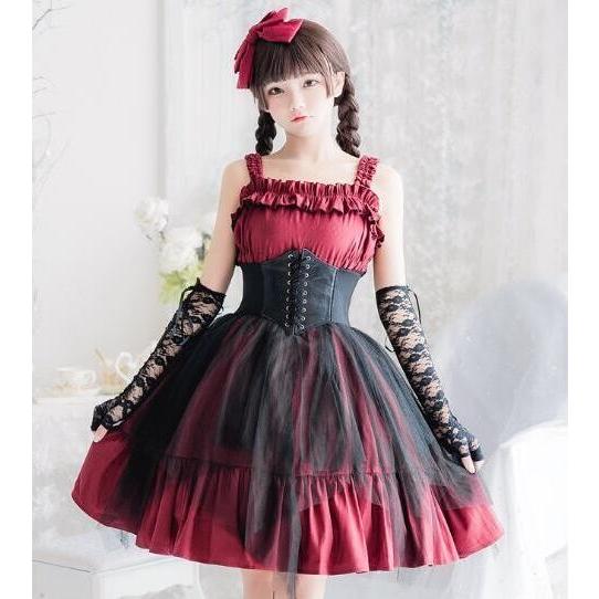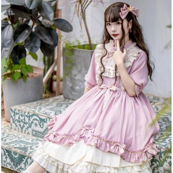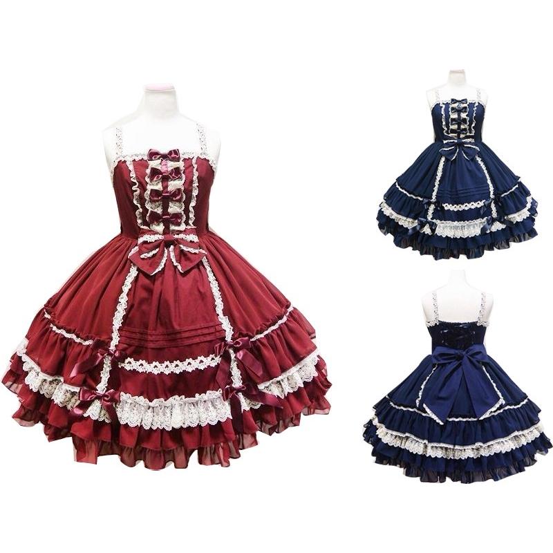 ロリータワンピース キャミソールドレス かわいい 二次元 コスプレウェア 舞台演出服 撮影衣装 リボン シフォンシャツ 洋服 女子高校生ス
