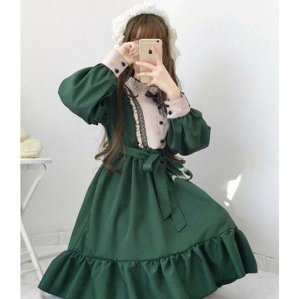 グリーン ロリータ コスプレ 可愛い長袖ワンピース スカラップ 演出服 レディース二次元衣装 美少女ウェア フリル編み上げ 31 0409 1 aio 通販 yahoo ショッピング