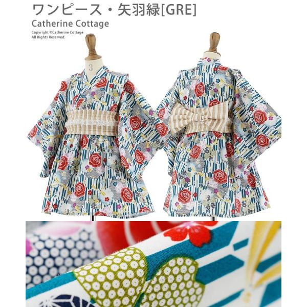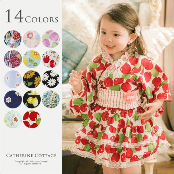 子供ドレスのキャサリンコテージ 本店 ワンピース スーツ フォーマル靴 浴衣 子供 女の子 キッズ ジュニア ベビー セパレート キャサリンオリジナル和柄がかわいい2ピース浴衣セット ワンピース 上衣 兵児帯 90 100 110 120 130 140 150 160 cm 紺 黒 ピンク