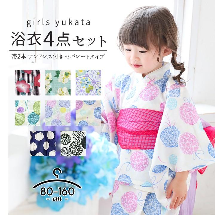 浴衣 子供 女の子 セパレート レトロ キッズ 帯 紫陽花 青 朝顔 椿 金魚 ワンピース 和柄 女児 100 110 120 130cm 5217851 キッズスマイルショップrobe 通販 yahoo ショッピング
