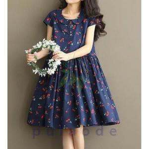 ensasa fashion ワンピース 森ガール 可愛い 大きめ 体型カバー丸襟 夏 綿麻 刺繍 半袖 丸襟 清楚系 膝丈 ナチュラル 柔らかい レディース ワンピース