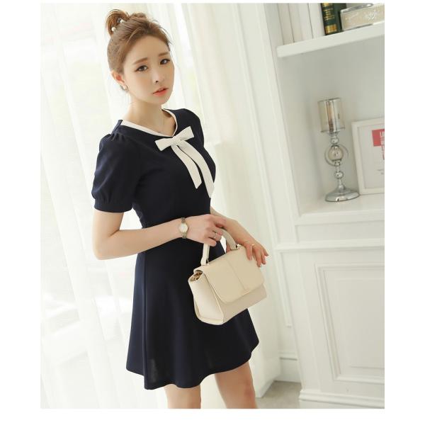 清楚系女子ワンピース 清楚ワンピース 女子力高いワンピースお袖リボンワンピース韓流人気ワンピース urarashop powered by base