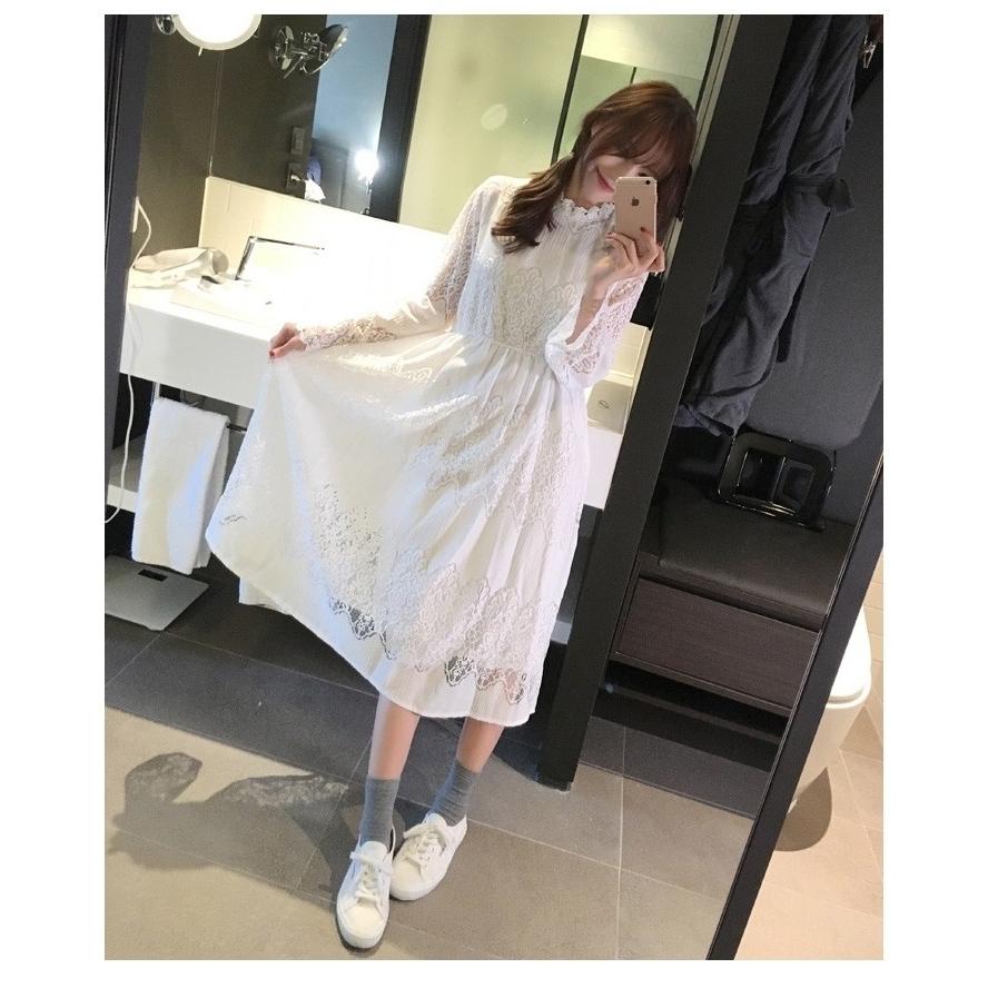 清楚系 レース ワンピース 透け肌 ホワイト 白 ドレス ミモレ丈 重ね着 コーデ 透け感 女子力 可愛い 春 夏 レイヤード カジュアル 80 38 love4you 通販 yahoo ショッピング