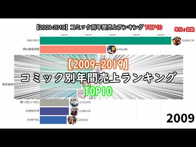 2009年 2019年のコミック年間売上top10 絶対王者 onepiece が君臨する中 鬼滅の刃 の1年での追い上げがエグい togetter