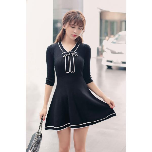 aozuoワンピース 黒 レディース ゆったり vネック 韓国風 ドレス ワンピース ロング 森ガール 着痩せ 体型カバー 秋物 長袖 可愛い デート パーディー 活動
