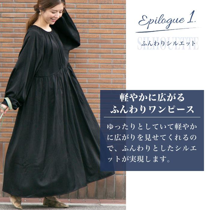 ギャザーワンピース ワンピース 長袖 秋物 ロングワンピース レディース ファッション 秋冬 2020aw新作