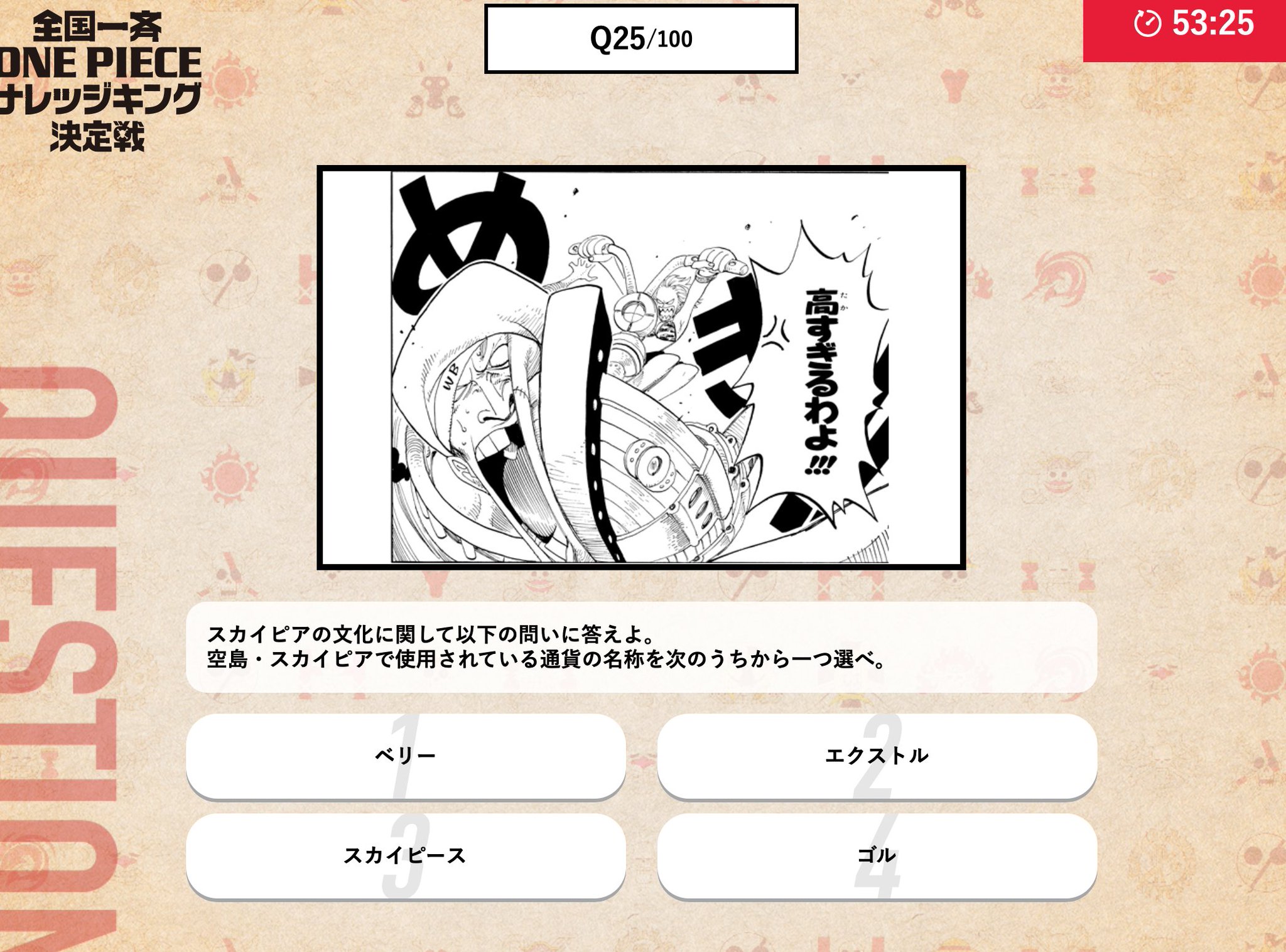 one pieceスタッフ 公式 twitter પર 青海とは異なる空島の文化についての問題です one piece公式you tubeチャンネルで 第1回ナレッジキング決定戦 頂上戦争 の様子を公開中 今年も総合上位10名は頂上戦争へご招待 https t co rnvdmksqug ワンピース