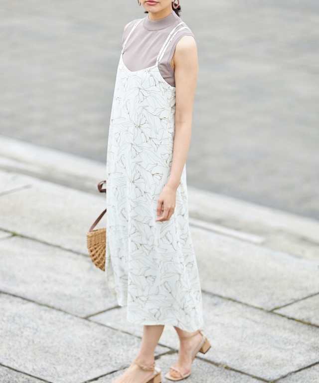 線画フラワープリントキャミワンピース