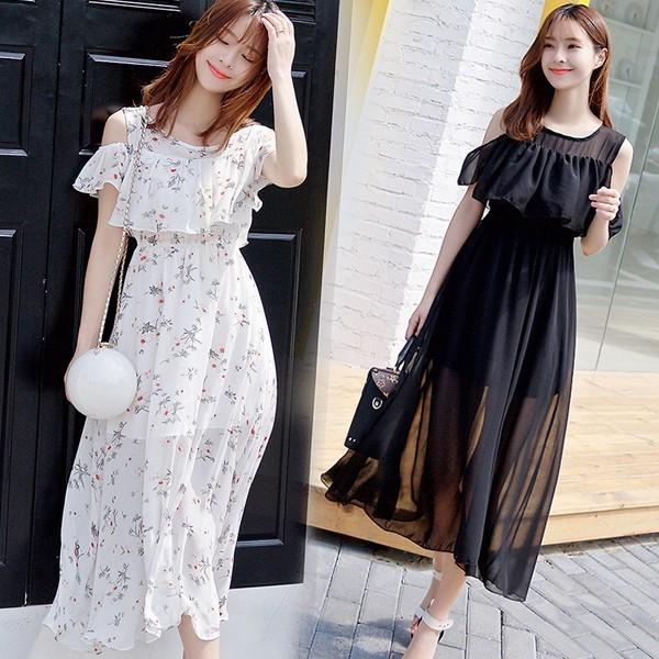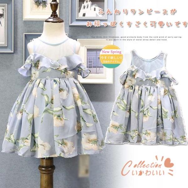 ワンピース オフショルダー ロングワンピース 子供服 女の子 上品 キッズ キャミワンピース 肩出し 花柄 夏 海 シフォン素材 フリル 120cm 130cm 140cm 150cm 160cm 子供服 アイ