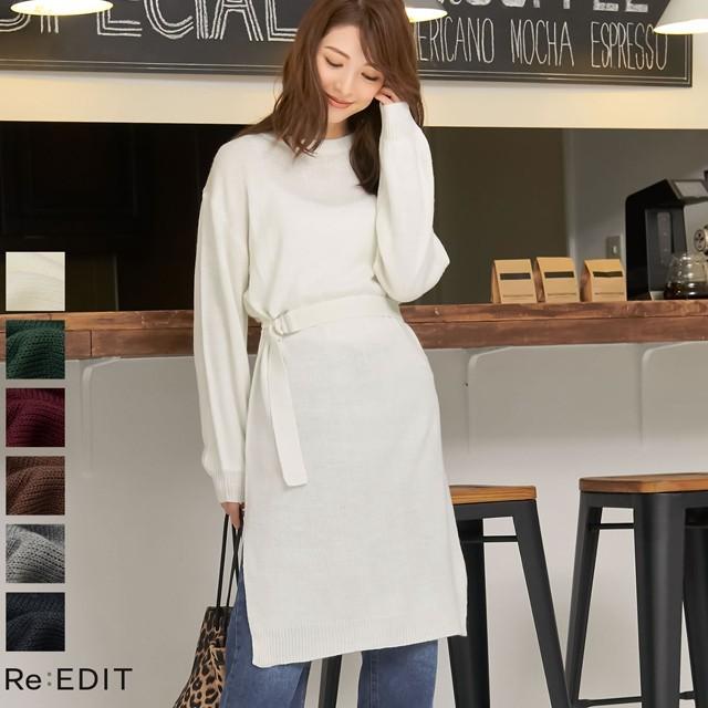 amazon co jp ニットワンピース 長袖 秋 冬 春 ワンピース レディース ニット カシュクールワンピース ウエスト切り替え ハイウエスト ウエストベルト 太ベルト プリーツ リブプリーツ ひざ丈 saison de papillon 服 ファッション小物