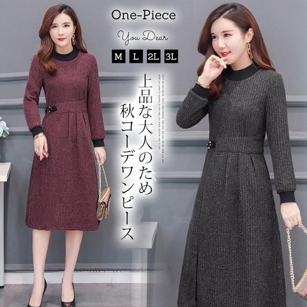 大きいサイズのワンピース 冬 きれいめワンピ ワンピース 膝丈 40代のワンピース 長袖ワンピース 裾レース ニットワンピース k0704 shopmall to you powered by base