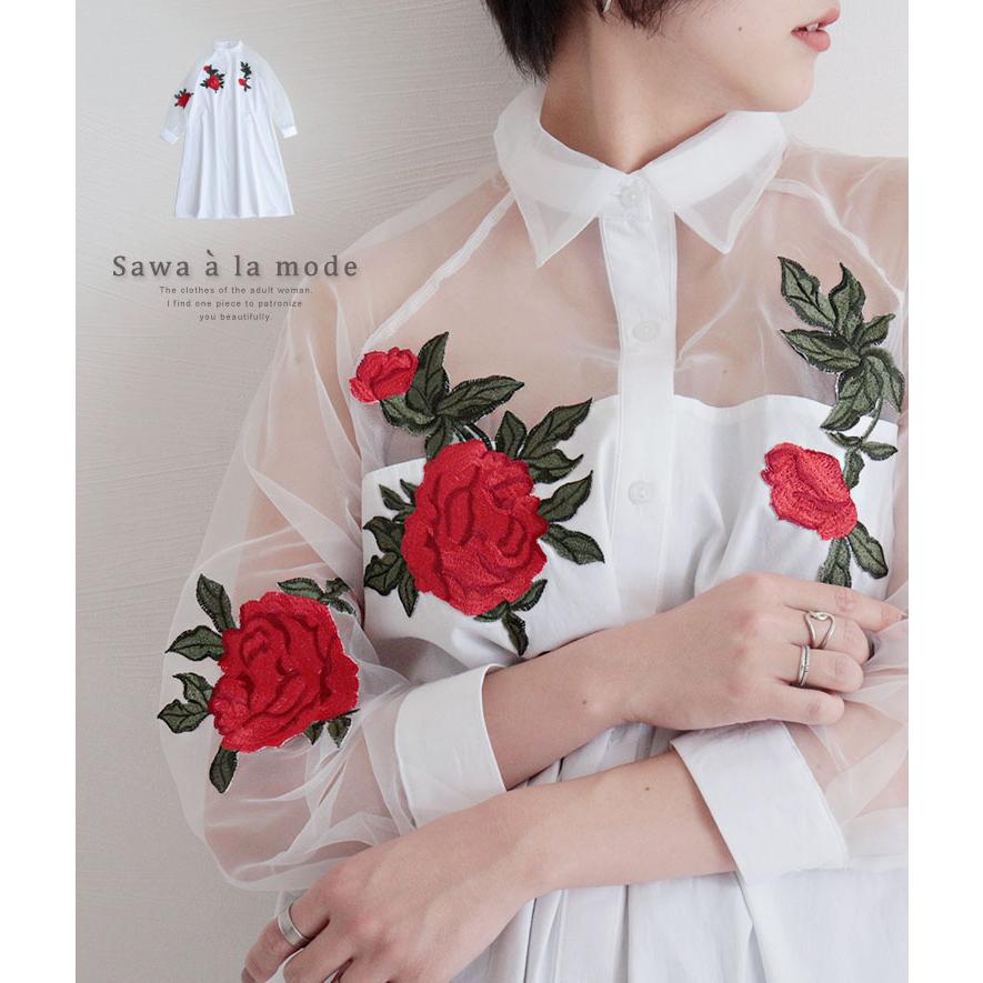 axes femme アクシーズファム の 薔薇プリント入りシャツワンピース シャツワンピース wear