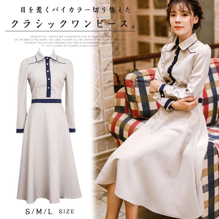 送料無料クラシックワンピース 襟付き バイカラー切り替え トレロ aラインワンピース フレアワンピース ワンピース クラシック 膝丈 ミドル丈 長袖 mcaa3651 アスティカ 通販 yahoo ショッピング