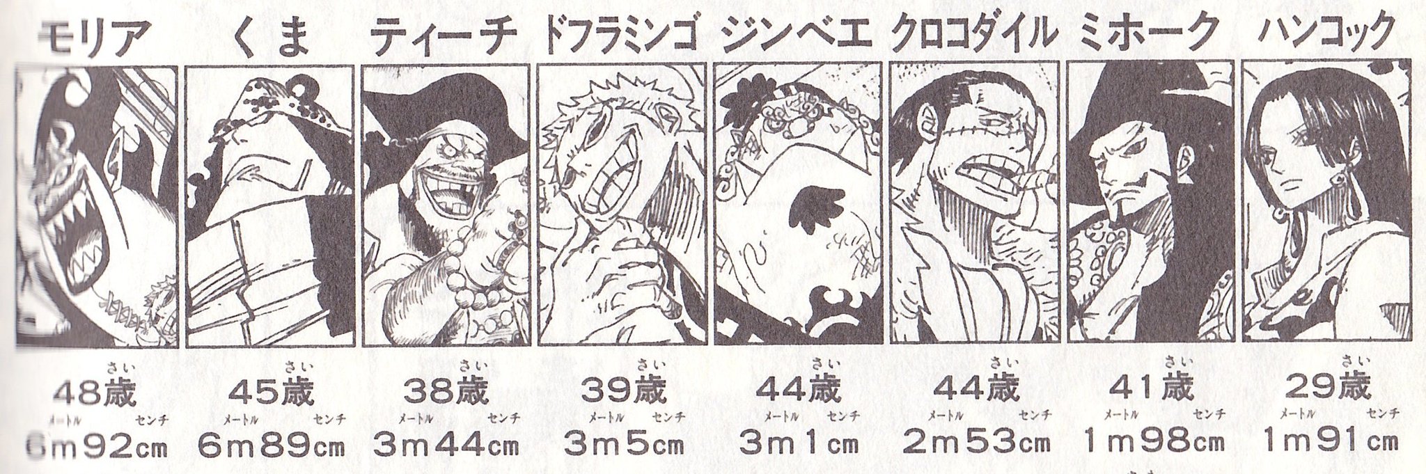 ワンピース 最悪の世代 王下七武海の身長と年齢がこちら モリアとくまデカすぎ あにまんch
