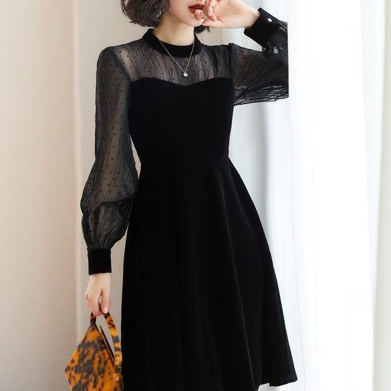 ベロア パーティドレス ワンピース 結婚式 new売り切れる前に フォーマルドレス エレガント レディース 秋冬ワンピース お呼ばれ ロング ゴールド 長袖 黒 上品 スリム