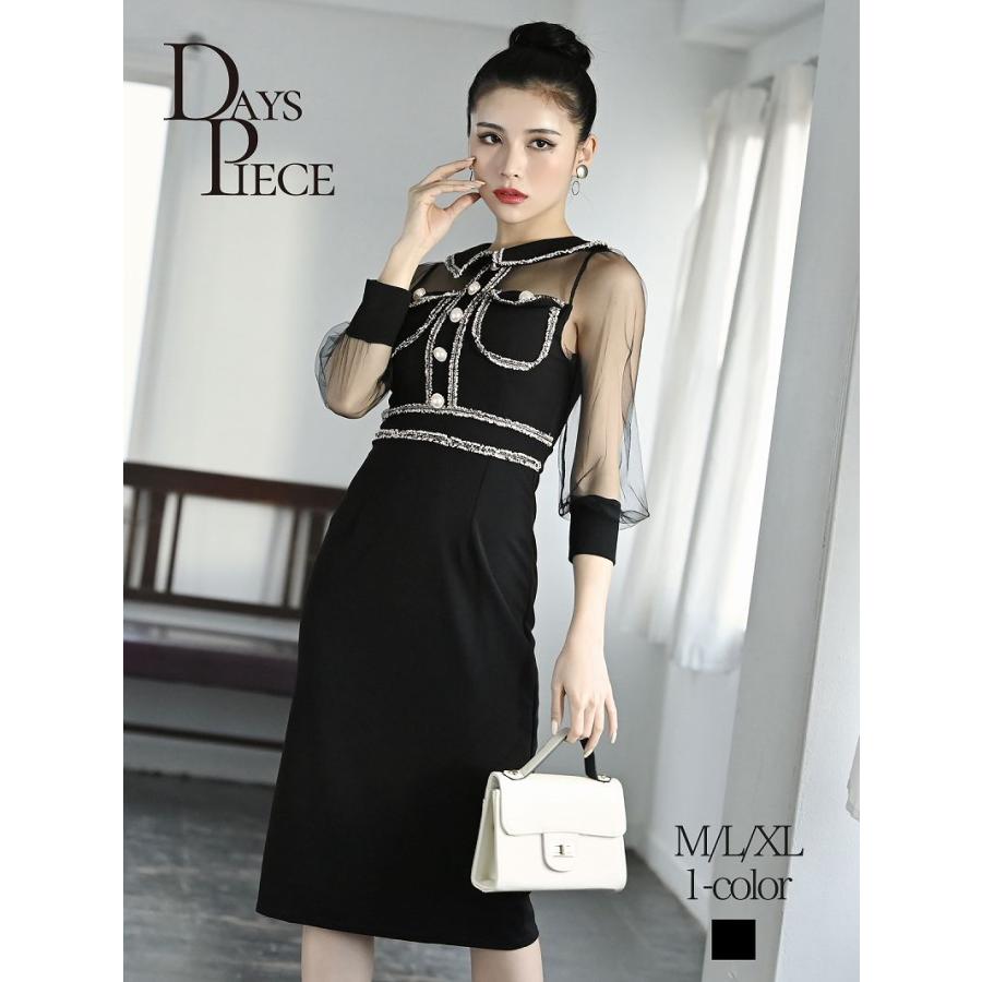 パッと目を引くフロントデザインと チラ見せショルダーラインが個性的なワンピース デザイン性が高いながらも気になる二の腕を華奢に見せてくれます 長めのレングスで結婚式やフォーマルな場にピッタリ シルエットはとっても清楚でガーリーなのに ちょっぴり