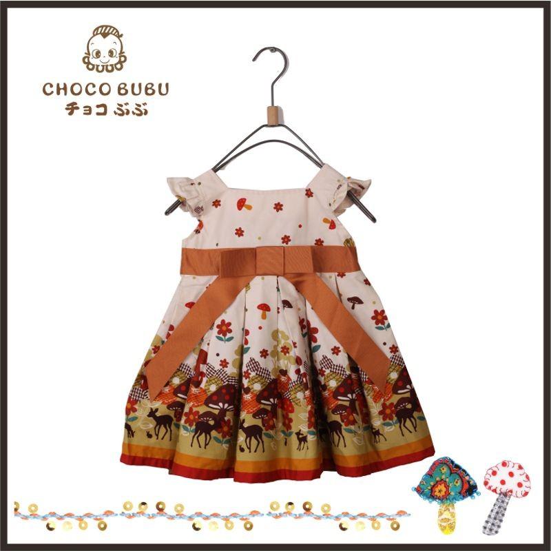 童話の森 シンプル長袖ワンピース 鹿 うさぎ リス 小鳥 ハリネズミと花柄 コットン100