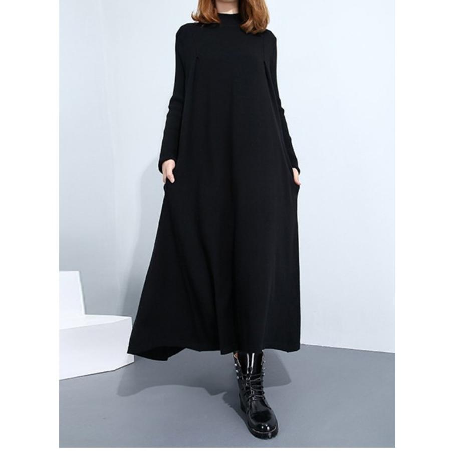 ロングワンピース 秋 レデース ワンピース 長袖 ロング丈 aラインワンピース 黒 無地 体型カバー ゆったり シンプル 上品 大人 ママ 30代 40代 50代 y510893 mooti 通販 yahoo ショッピング