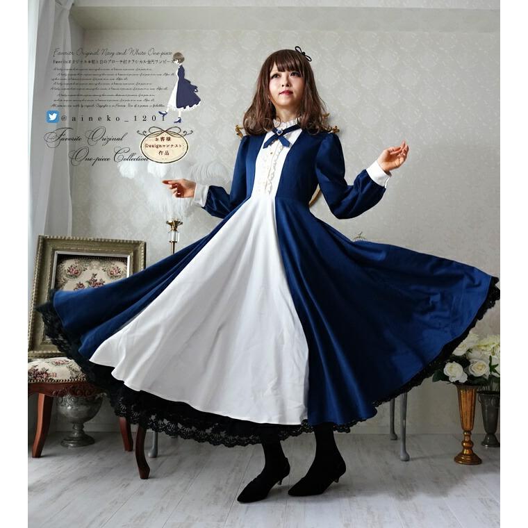 ワンピース専門店favorite 森ガール ナチュラル ワンピース 童話 ロング レース フリル designコンテスト作品 favoriteオリジナル カフス付き エプロンデザイン画セーラー襟お嬢様ワンピース 2019年3月新作上旬 新作予約 4月30日頃より順次 コスチューム