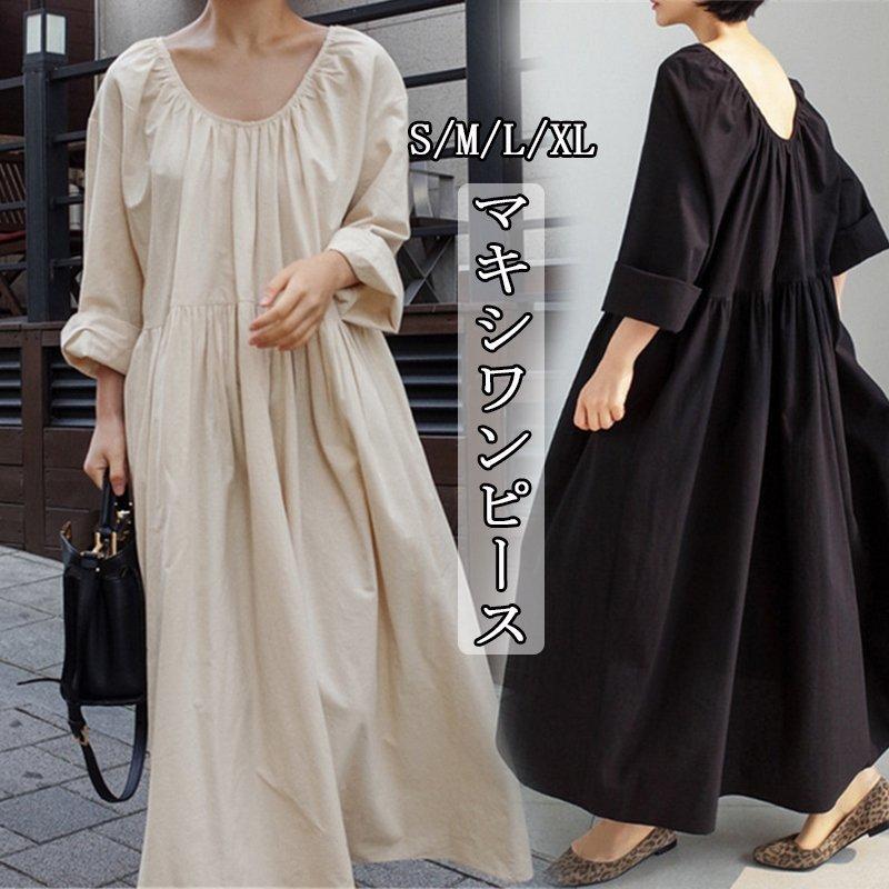 2021年春コーデ 大きいサイズ レディース マキシワンピース ゆったり 30代 40代 50代 ワンピース ロング丈 ワンピース vネック 長袖 無地 ゆったり 体型カバー マキシ丈 ロングワンピース 長袖 カジュアル きれいめ ウエストリボン soomoo