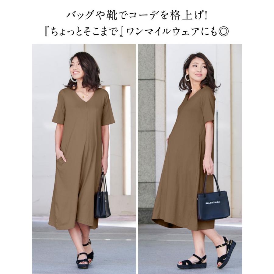 ワンピース ドロスト ロング丈 レディース 半袖 夏 ブラック グレー モカ カーキ 大きいサイズ m l ll きれいめ ワンマイルウェア aquagarage アクアガレージ 通販 paypayモール
