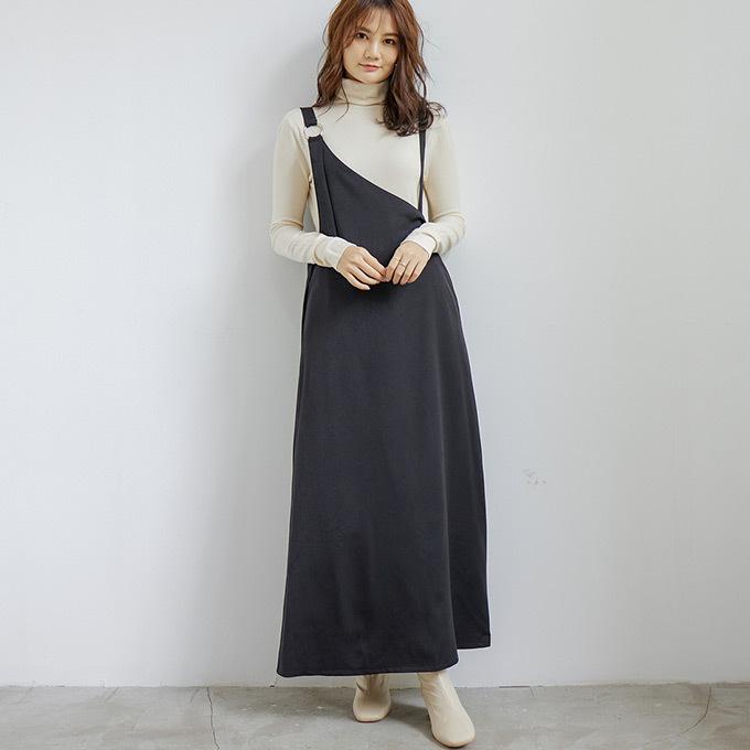 アシンメトリーワンピ ワンピース レディース 春 秋 ロング丈 ワンショルダー ジャンパースカート ジャンスカ