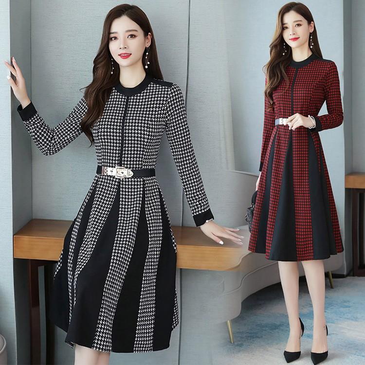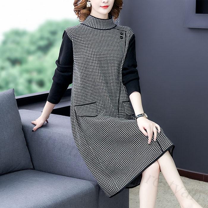 ワンピース レディース 40代 秋冬 長袖 上品 大きいサイズ きれいめ 膝丈ワンピース 無地 新品 保障 丸首 おしゃれ 着痩せ ol 韓国風 通勤 パーティードレス 可愛い