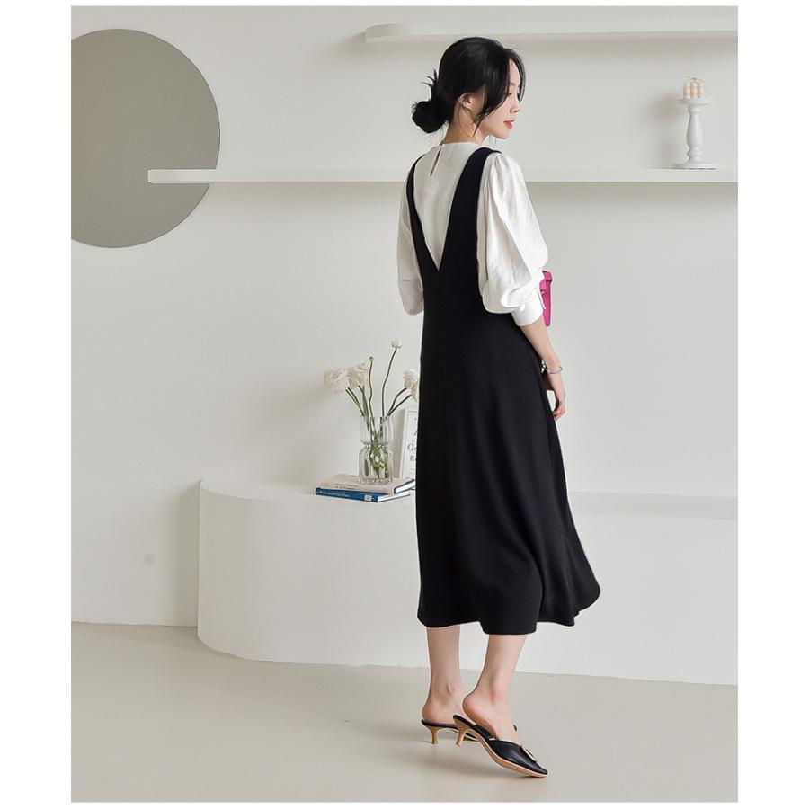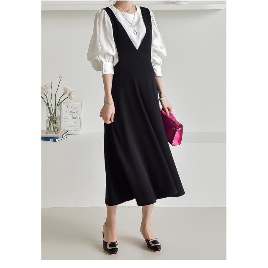 en joie アンジョア 61690 通年 ふんわり柔らかでハイウエストの切替で美脚効果のワンピース 七分袖 女性用 無地