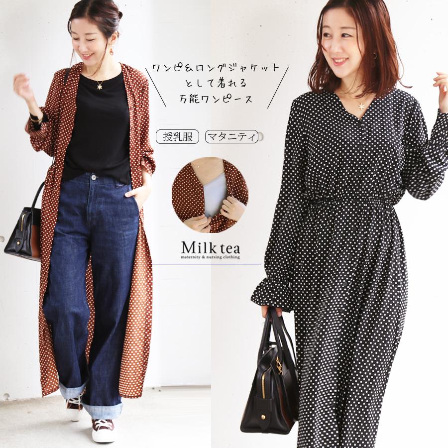 授乳服 レトロドット2wayワンピース ボタンタイプ シャツワンピース ドット フレアーワンピース 産後 事務服 お仕事 オフィス お宮参り お食い初め 安い 8449 授乳服とマタニティ服のmilk tea 通販 yahoo ショッピング