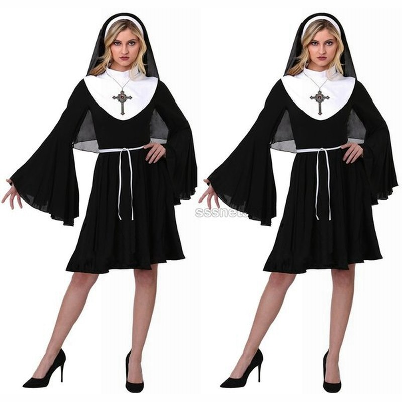 amazon co jp ノーブルロングシスター シスター 聖堂 ブラック 修道服 マリア様 ベール ワンピース ロング ロング丈 ロリータ ゴスロリ 黒 ベール かわいい セクシー コスプレ コスプレ衣装 コスチューム ハロウィン 文化祭 忘年会 仮装 衣装 イベント 2020 即納 s cs