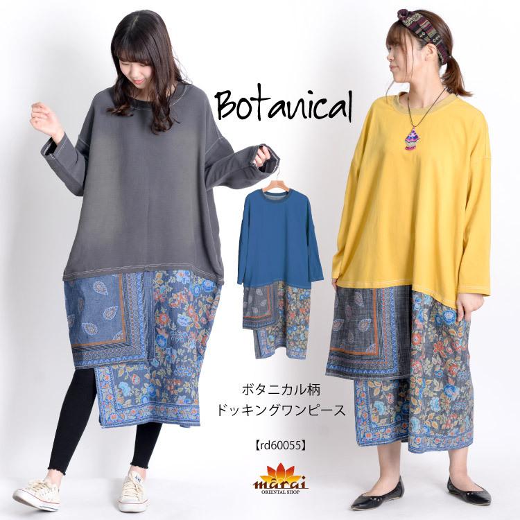 ワンピース レディース 長袖 大きいサイズ ロングワンピース ドッキングワンピース 柄 秋 冬 デニム 個性的 エスニック アジアン ファッション rd60055 アジアン カジュアル マーライ 通販 yahoo ショッピング