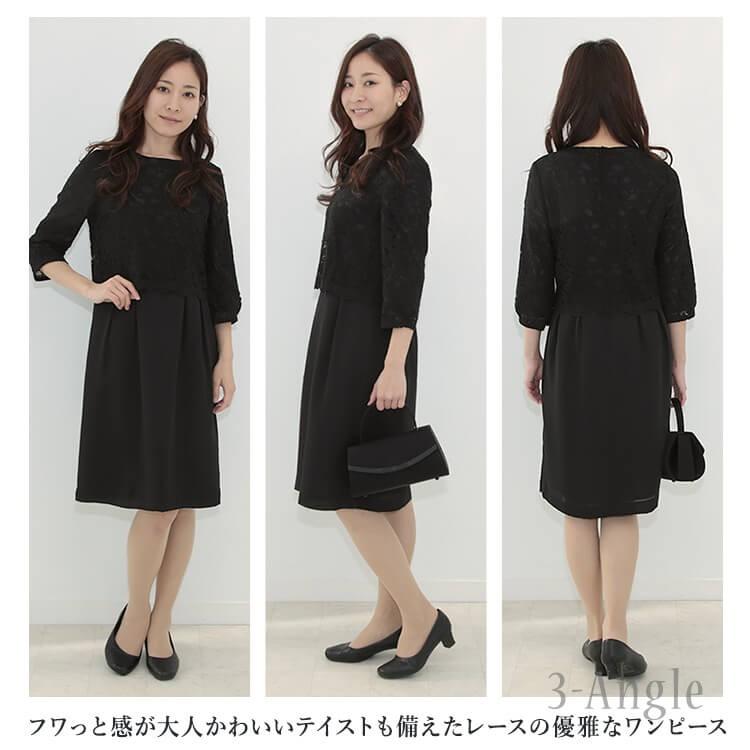 オールシーズン 冠婚葬祭 フォーマル 30代 40代 50代 喪服 ブラックフォーマル 礼服 レディース ワンピース s 8l 洗える フォーマル 前開き レース ワンピース 上下別売 大きいサイズ ニッセン nissen b0 lans or jp