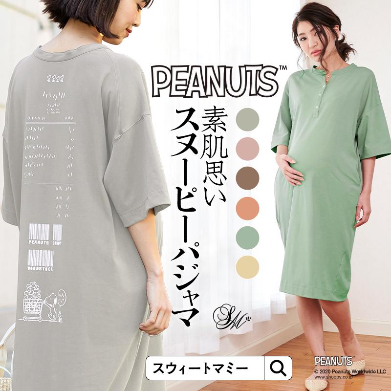 マタニティ パジャマ スヌーピー ルームウェア プリント ワンマイル tシャツ ワンピース 産前産後 授乳服 ワンマイルウェア マタニティ 服 春 夏 半袖 bn19131 授乳服とマタニティ服のsweetmommy 通販 yahoo ショッピング