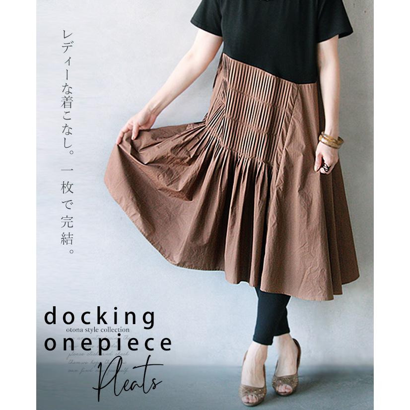 サイドプリーツ切り替えワンピース