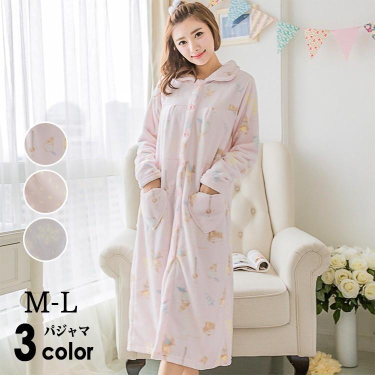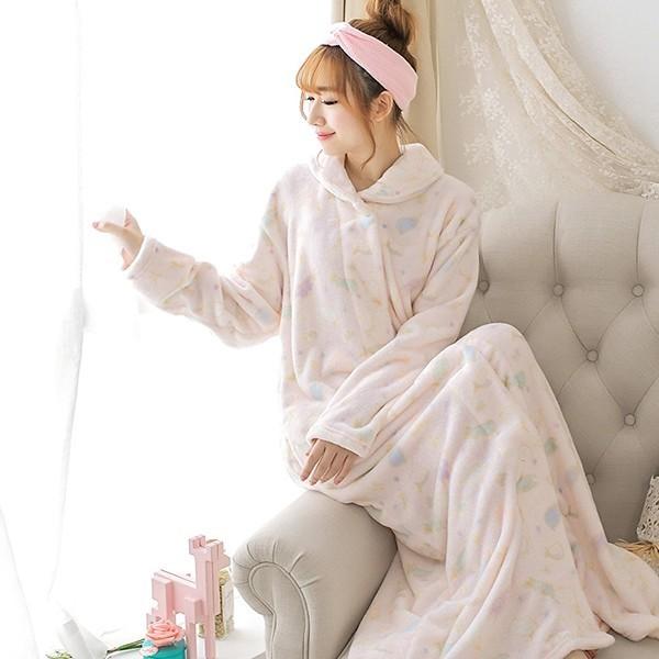 うさ耳 もこもこ 前開き ワンピース ルームウェア レディース 秋 冬 物 長袖 ロング 丈 韓国 パジャマ カーディガン rw 0064 happy orurea ハッピーオルレア powered by base