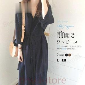 ガウンワンピース ワンピース シャツワンピース 長袖 ミモレ丈 ロング丈 前開きワンピース ウエスト紐 2way シンプル ガウンレディース 春 ワンピ 無地 op1908 0755 dark angel ダークエンジェル 通販 yahoo ショッピング