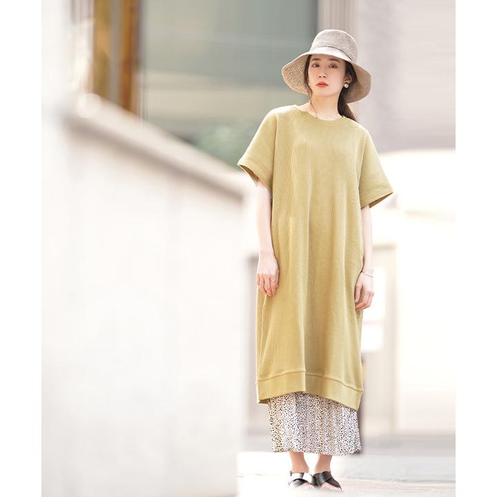 ワンピース 春物 春夏 ワッフル レディース 半袖 zootie ズーティー ワッフルカットソー サイドスリットvネックワンピース イーザッカマニアストアーズ 通販 paypayモール