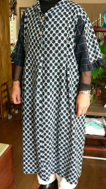 古布絣パッチワンピースヒラヒラ付 着物リメイク 遊びやまちだ展示会情報 着物リメイク