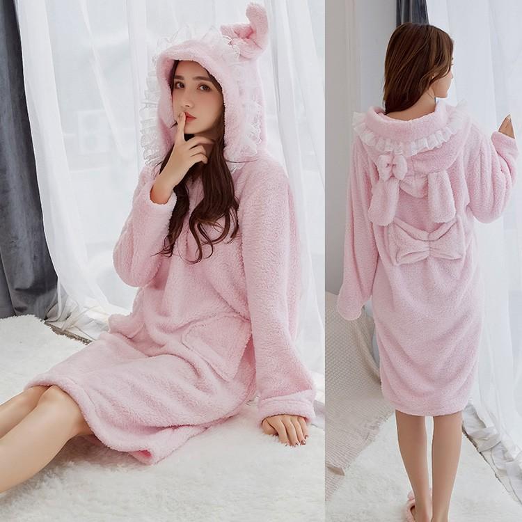 amazon royanney ルームウェア ワンピース レディース ネグリジェ 冬 パジャマ モコモコ もこもこ かわいい うさ耳 パジャマ みみ 暖か 部屋着 ウサギ耳 ルームワンピース ルームワンピース ネグリジェ 通販
